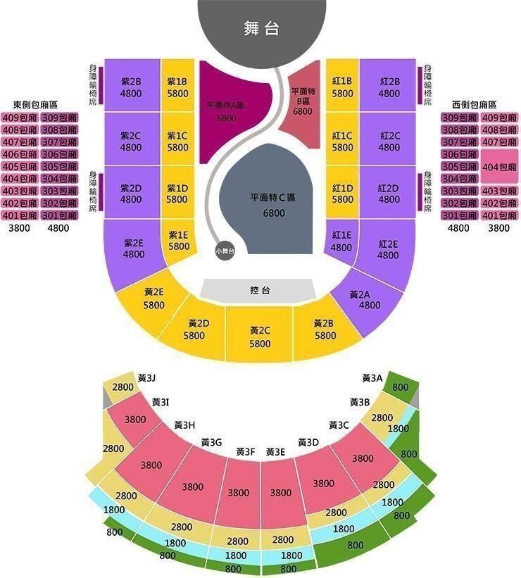 | 門票價錢: | NT$ 6800 / 5800 / 4800 / 3800 / 2800 / 1800 / 800 / 400 |