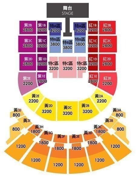 門票價錢: NT 4200 / 3800 / 3200 / 2800 / 2200 / 1800 / 1200 / 800。