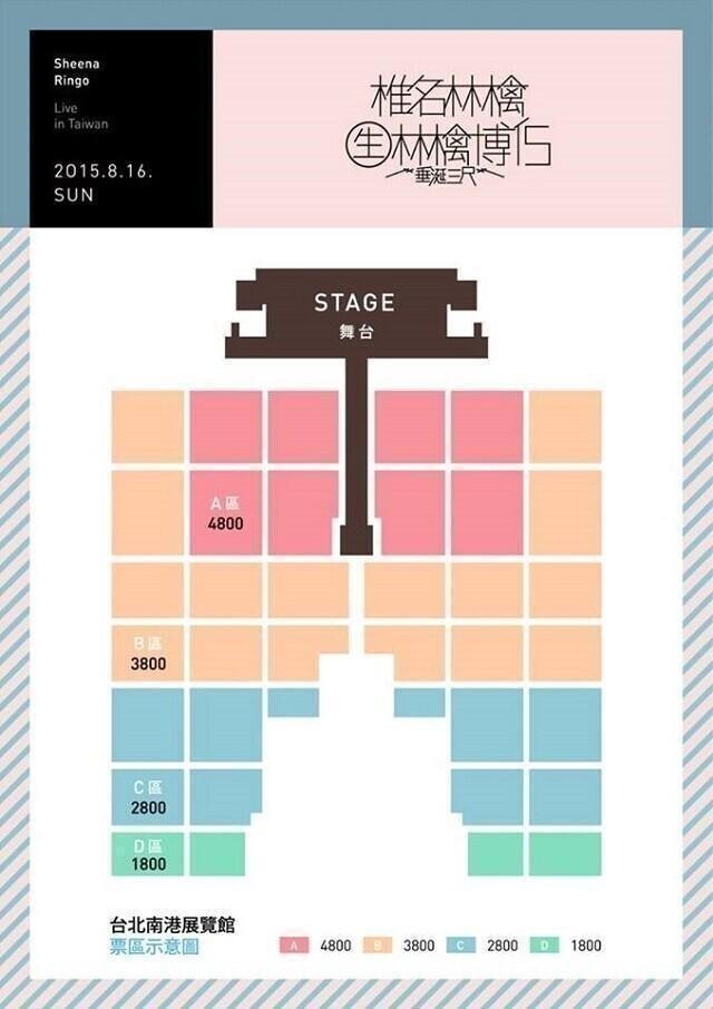 椎名林檎 演唱會 2015, 演出日期: 2015年8月16日 (星期日), 門票價錢: NT$ 4800 / 3800 / 2800 / 1800, 演出場館: 台北南港展覽館, 全面開賣: 2015年5月16日12:00起