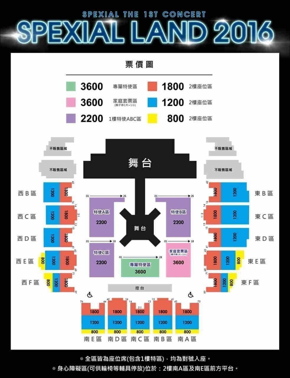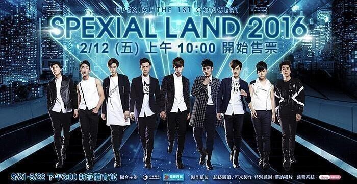 SpeXial 台北演唱會 2016, 演出日期: 2016年5月21日 - 22日 (共2場), 門票價錢: NT$ 3600 / 2200 / 1800 / 1200 / 800, 演出場館: 台北新莊體育館, 全面開賣: 2015年2月12日10:00起 IBON