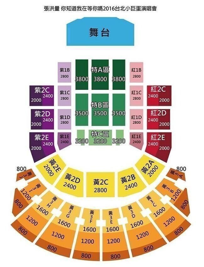 | 門票價錢: | NT$ 3800 / 3500 / 3200 / 2800 / 2400 / 2000 / 1600 / 1200 / 800 |