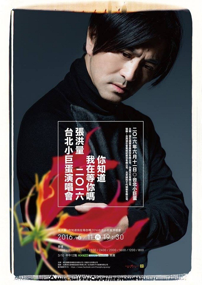 張洪量 台北演唱會 2016 門票價錢及售票日期時間