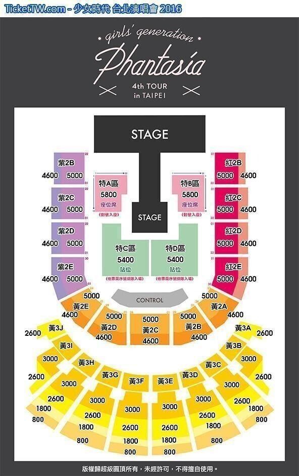 | 門票價錢: | NT$ 5800 / 5400 / 5000 / 4600 / 3000 / 2600 / 1800 / 800 |