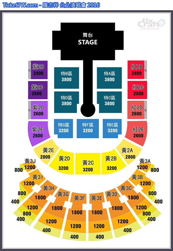 門票價錢: NT 3800 / 3200 / 2800 / 2600 / 1800 / 1200 / 800 / 400
