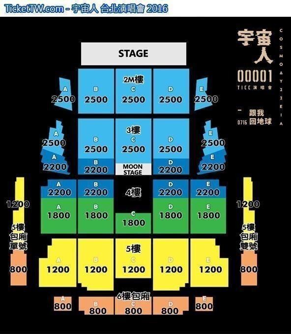 宇宙人 台北演唱會 2016, 演出日期: 2016年7月16日 (星期六), 門票價錢: NT$ 2500 / 2200 / 1800 / 1200 / 800, 演出場館: TICC台北國際會議中心, 全面開賣: 2016年5月7日11:00起 TIXCRAFT