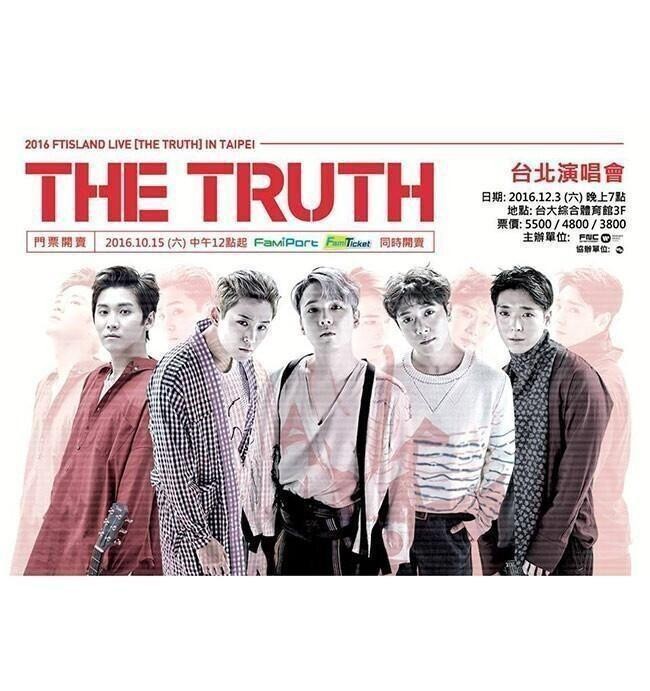 FTISLAND 台北演唱會 2016, 演出日期: 2016年12月3日 (星期六), 門票價錢: NT$ 5500 / 4800 / 3800, 演出場館: 台大綜合體育館, 全面開賣: 2016年10月15日12:00起
