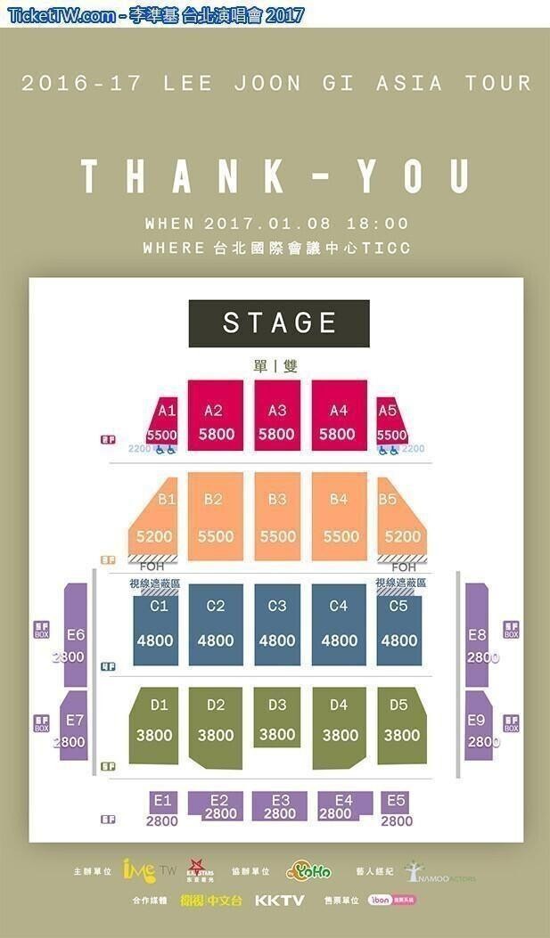 李準基 台北演唱會 2017, 演出日期: 2017年1月8日 (星期日), 門票價錢: NT$ 5800 / 5500 / 5200 / 4800 / 3800 / 2800, 演出場館: TICC台北國際會議中心, 全面開賣: 2016年11月26日12:00起 IBON