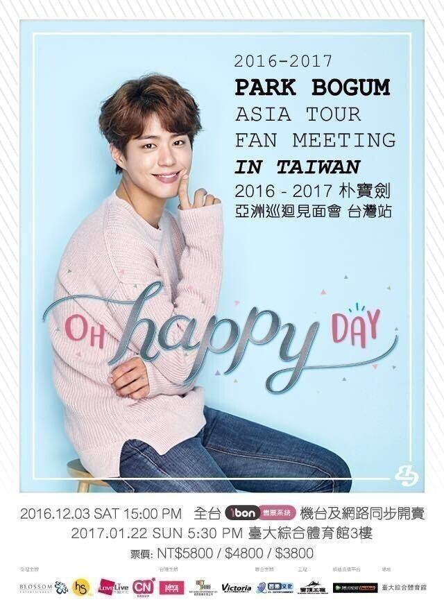 朴寶劍 台灣粉絲見面會 2017, 演出日期: 2017年1月22日 (星期日), 門票價錢: NT 5800 / 4800 / 3800, 演出場館: 台大綜合體育館, 公開發售: 2016年12月3日15:00起 IBON