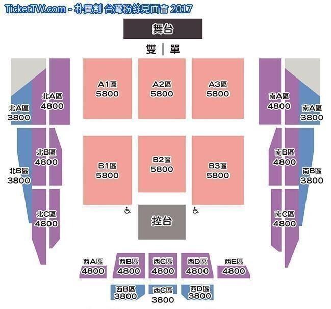 門票價錢: NT 5800 / 4800 / 3800。