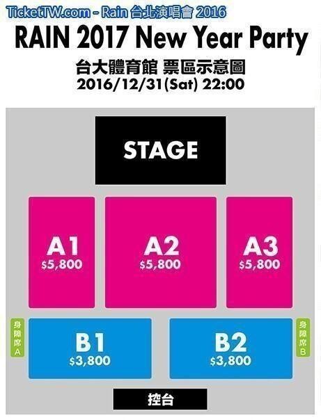Rain 台北演唱會 2016 座位表 Seating Plan