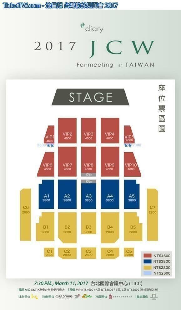 池昌旭 台灣粉絲見面會 2017, 演出日期: 2017年3月11日 (星期六), 門票價錢: NT$ 4600 / 3800 / 2800, 演出場館: TICC台北國際會議中心, 全面開賣: 2017年2月19日14:00起 KKTIX