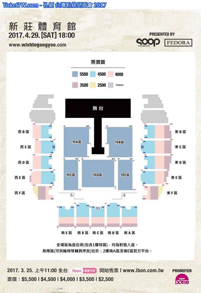 售票日期: 2017年3月25日 11:00起 ibon售票 (限機台)
