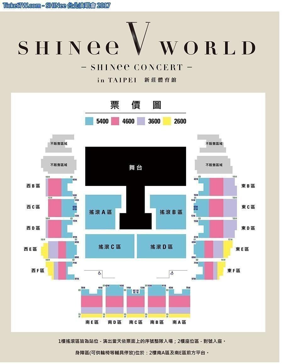 SHINee 台北演唱會 2017, 演出日期: 2017年6月11日 (星期日), 門票價錢: NT$ 5400 / 4600 / 3600 / 2600, 演出場館: 台北新莊體育館, 全面開賣: 2017年4月15日13:00起 TIXCRAFT