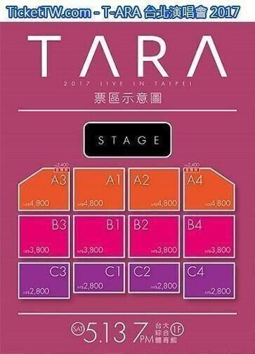 T-ARA 台北演唱會 2017, 演出日期: 2017年5月13日 (星期六), 門票價錢: NT 4800 / 3800 / 2800, 演出場館: 台北小巨蛋, 公開發售: 2017年4月9日11:00起