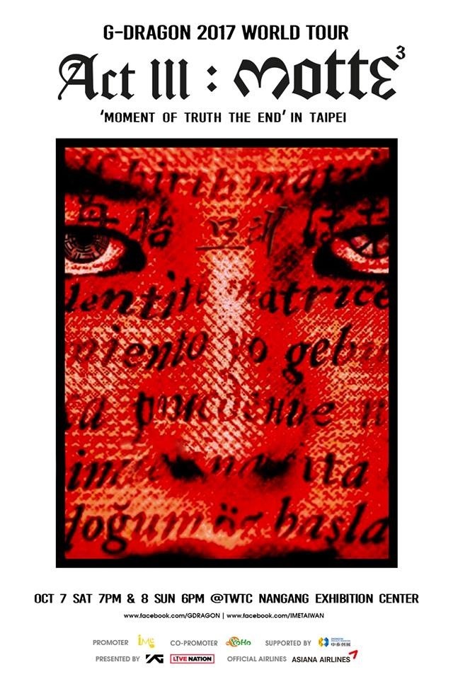 G-Dragon 台北演唱會 2017 官方宣傳海報 Poster