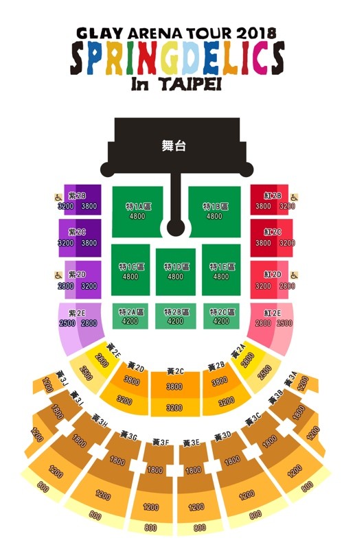 門票價錢: NT$4800 / $4200 / $3800 / $3200 / $2800 / $2500 / $1800 / $1200 / $800