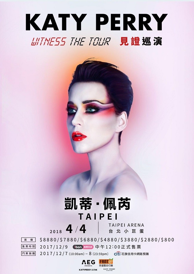 凱蒂佩芮 台北演唱會 2018 門票價錢及售票日期時間