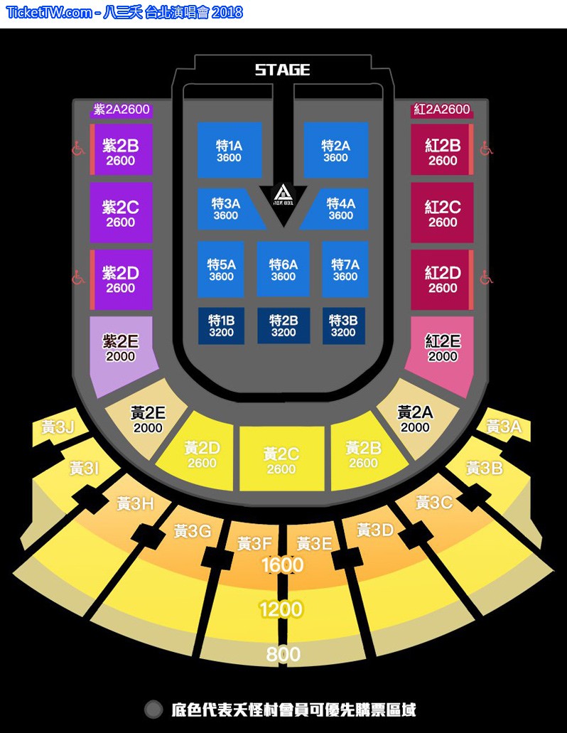 門票價錢: NT$3600 / $3200 / $2600 / $2000 / $1600 / $1200 / $800