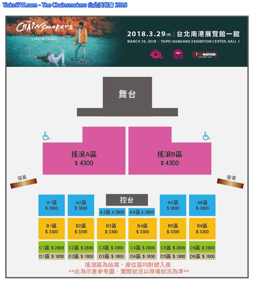 The Chainsmokers 台北演唱會 2018 座位圖 Seating Plan