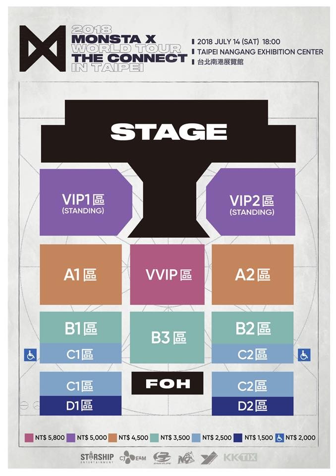 MONSTA X 台北演唱會 2018 座位圖 Seating Plan