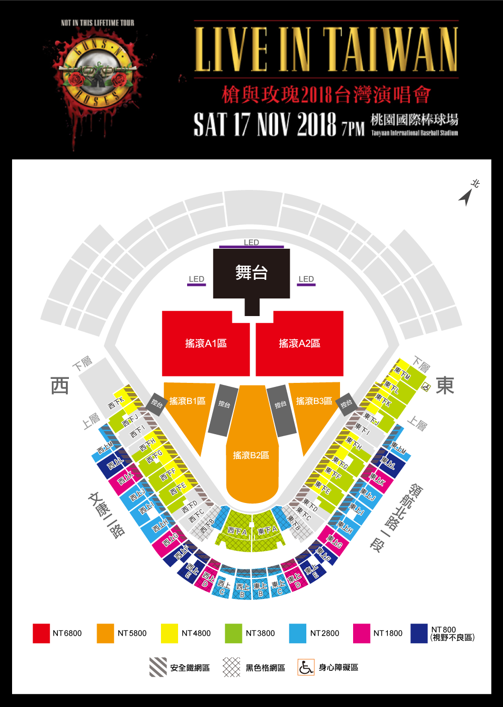 槍與玫瑰 台灣演唱會 2018 座位圖 Seating Plan