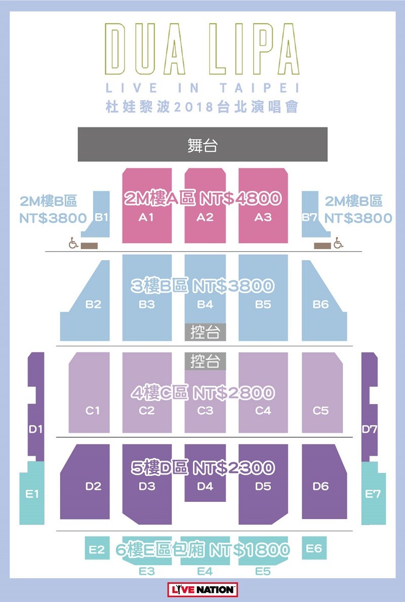 杜娃黎波 台北演唱會 2018 座位圖 Seating Plan
