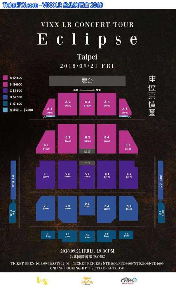 門票價錢: NT$4600 / $3600 / $2600 / $1600 (全場對號入座)