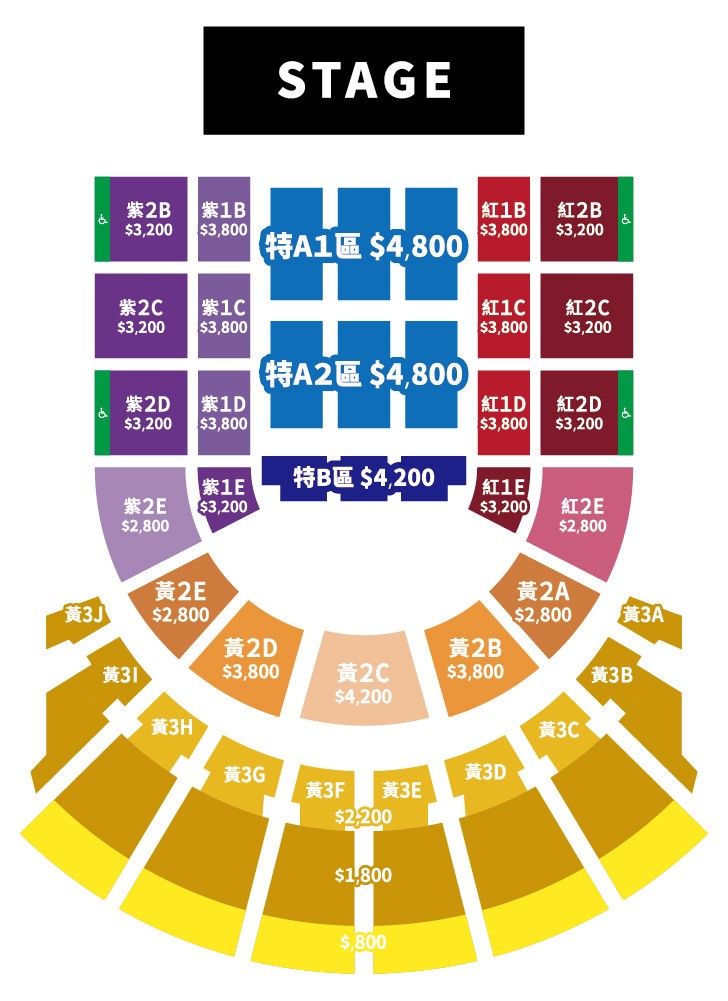 門票價錢: NT$4800 / $4200 / $3800 / $3200 / $2800 / $2200 / $1800 / $800