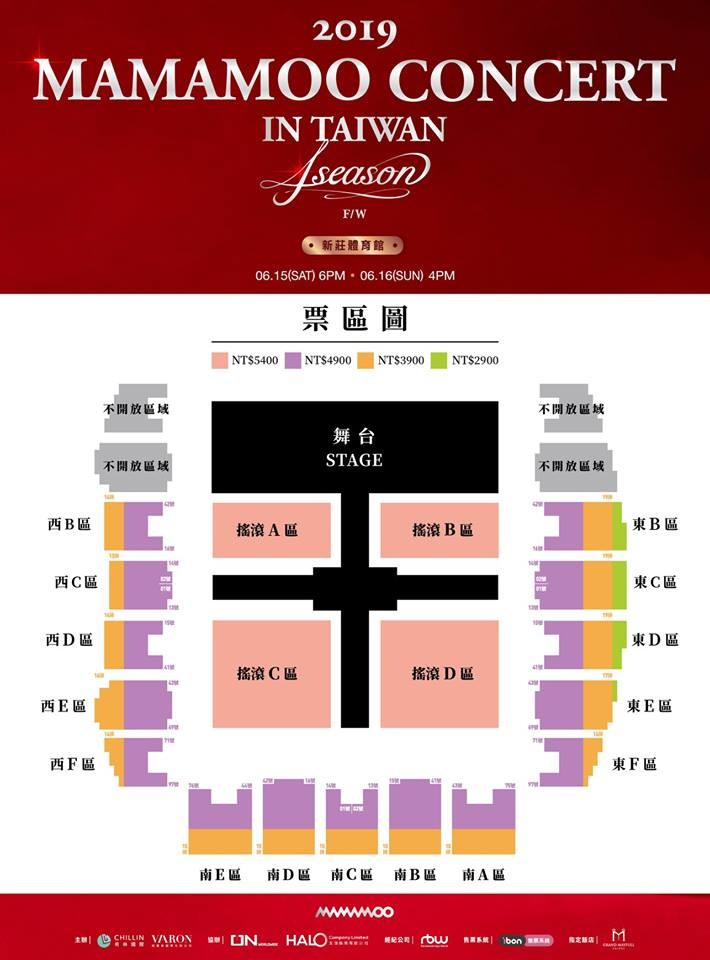 MAMAMOO 台灣演唱會 2019 座位圖 Seating Plan