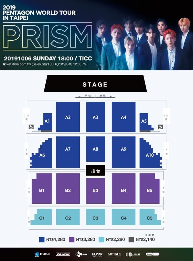 PENTAGON 台北演唱會 2019 座位圖 Seating Plan
