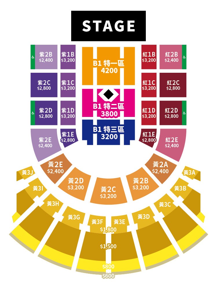 票 價:NT$4200/3800/3200/2800/2400/1800/1500/800/600 (全場對號入座)