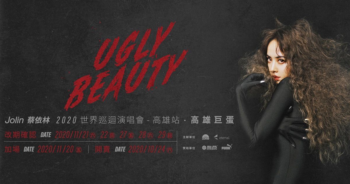 因應疫情持續影響,經慎重評估後,為保障歌迷朋友及相關工作人員的健康安全,積極配合政府防疫措施,超級圓頂決定將原訂五月份於高雄巨蛋舉辦之【蔡依林 Ugly Beauty 2020 世界巡迴演唱會 高雄站】延後辦理;因疫情發展尚無法準確預測,超級圓頂將配合政策於排除群眾傳染疑慮後,另行公告舉辦日期。