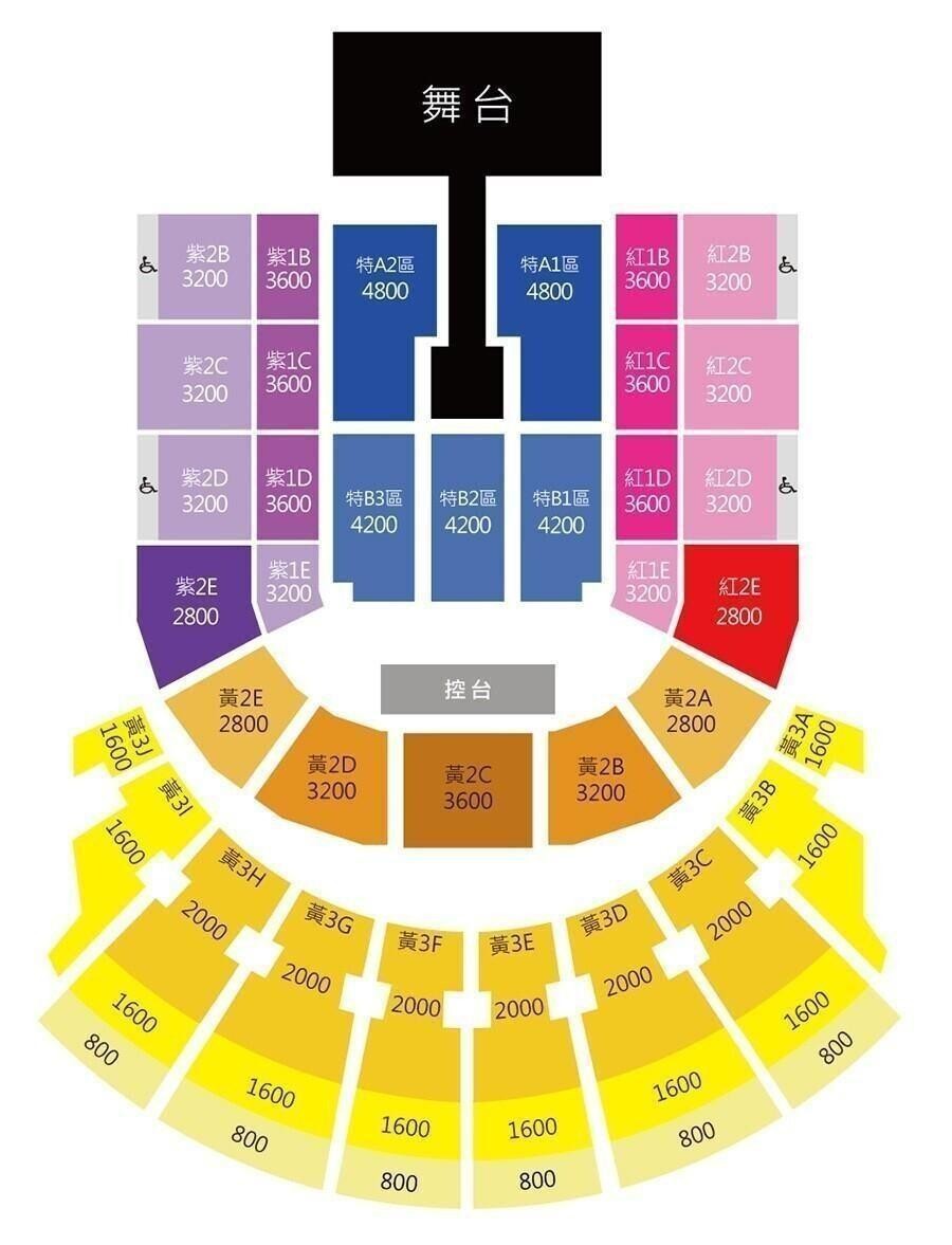 門票價錢: NT 4800 / 4200 / 3600 / 3200 / 2800 / 2000 / 1600 / 800。