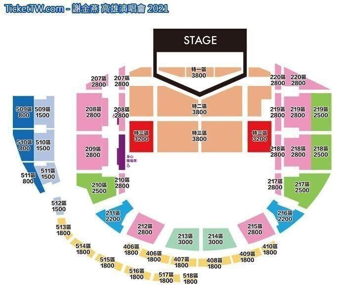 門票價錢: NT 3800 / 3200 / 3000 / 2800 / 2500 / 2200 / 1800 / 1500 / 800。