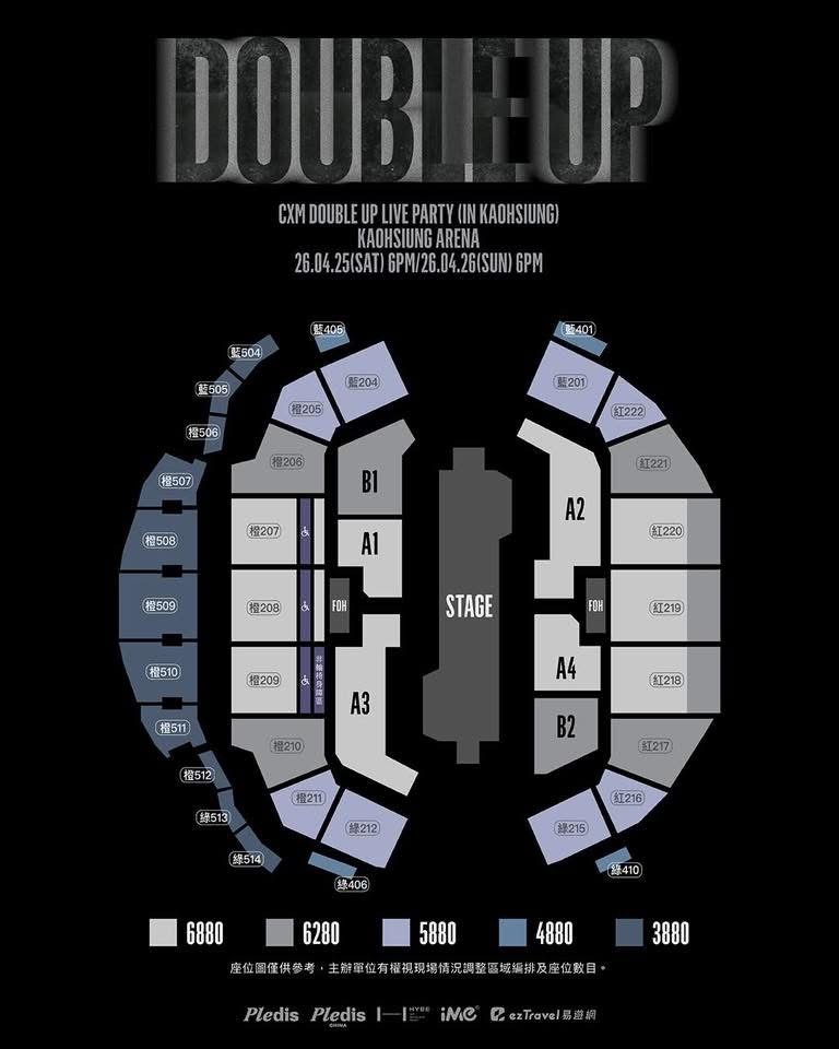 門票價錢: NT 6880 / 6280 / 5880 / 4880 / 3880。