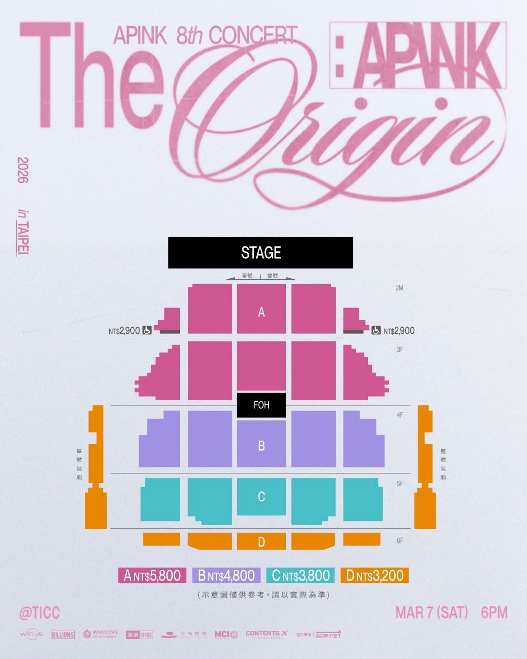 | 門票價錢: | NT 5800 / 4800 / 3800 / 3200 / 2900 |