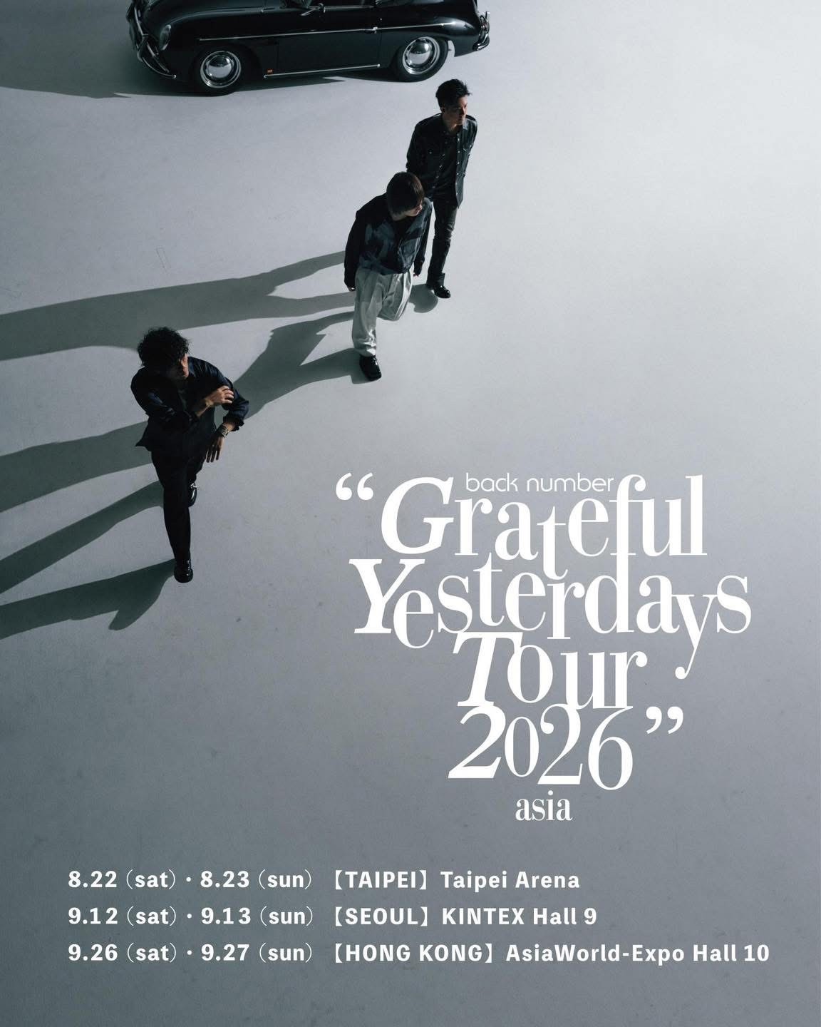 back number 台北演唱會 2026, 演出日期: 2026年8月22日 - 23日 (共2場), 門票價錢: 有待公佈, 演出場館: 台北小巨蛋, 全面開賣: 有待公佈
