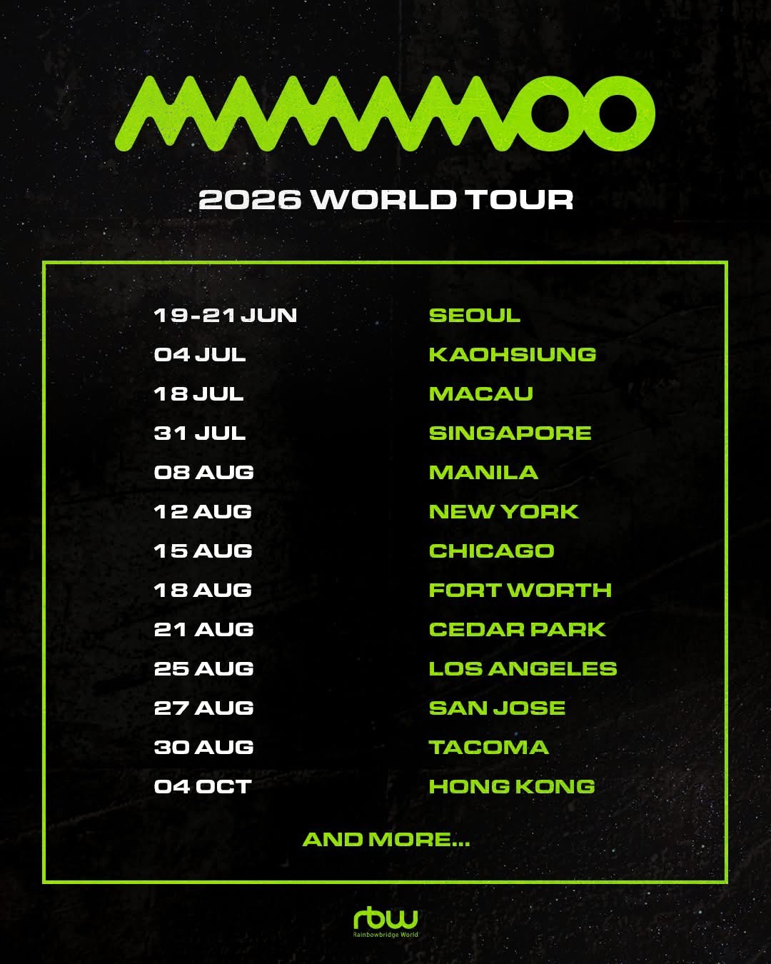 MAMAMOO 高雄演唱會 2026, 演出日期: 2026年7月4日 (星期六), 門票價錢: 有待公佈, 演出場館: 待定, 全面開賣: 有待公佈